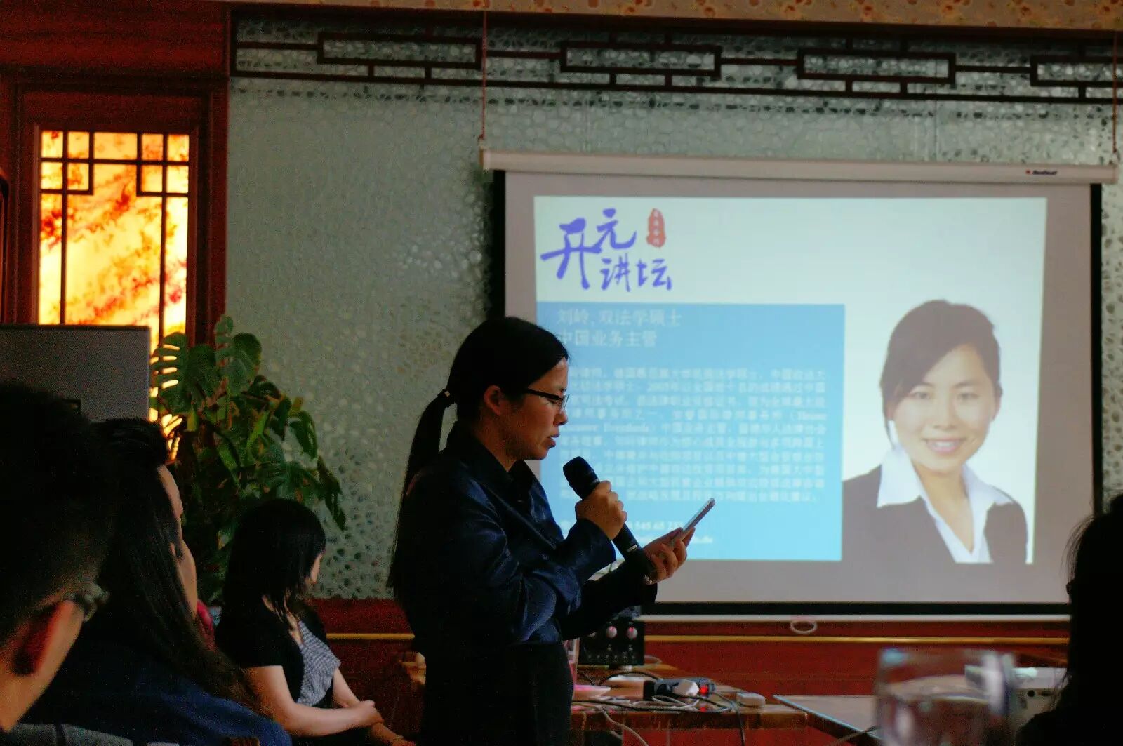 主讲人刘岭律师目前在全球最大经济律师事务所之一的安睿国际律师事务所任中国业务部负责人,她毕业于慕尼黑大学民商法学系,同时是留德华人法律协会常务理事。刘岭律师作为核心成员全程参与过多项跨国上市项目,中德兼并与收购项目以及中德大型合资或合作项目,为德国大中型企业,中国国企和大型民营企业提供双边投资法律咨询和商业咨询。本次的主题“在德雇主与雇员的权利和义务”也是其核心业务领域的一部分,在此她给予了与会者充分的信息和忠告,让大家获益良多。