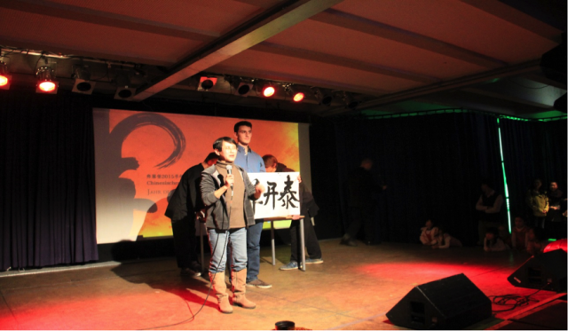 随后,弗莱堡大学孔子学院的张老师在舞台上泼墨挥毫,写下“三羊开泰”四个字,意喻了对2015年农历羊年的美好期待。观众对这一中国传统书法的精湛表演赞叹不已。