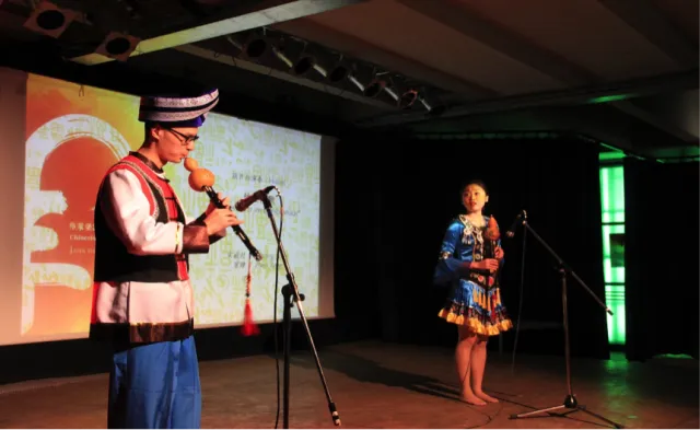 由弗莱堡大学汉学系学生组成的合唱团表演了中文歌曲《爱江山更爱美人》和《掀起你的盖头来》。