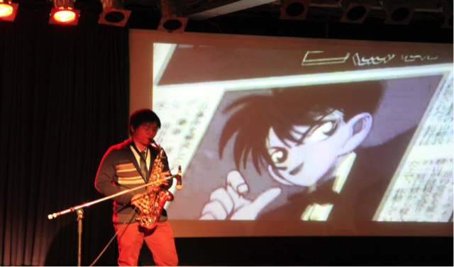 萨克斯管演奏的动漫歌曲串烧赢得了观众的阵阵掌声:小叮当,名侦探柯南,灌篮高手,当这些熟悉的旋律引起了在场学生的共鸣,似乎在这一刻,那些难忘的美好童年又回来了。