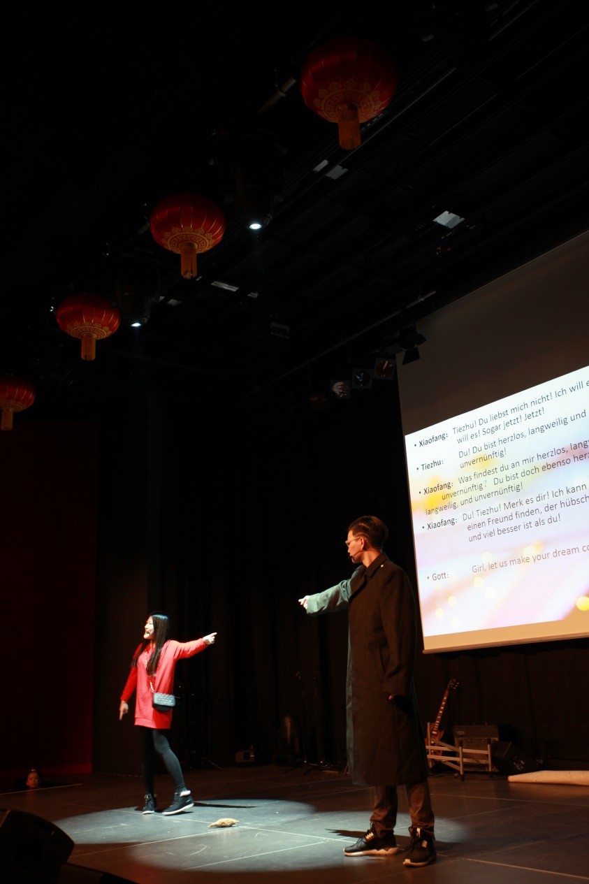 语言类节目是春晚的重头戏,也是观众关心的节目类型。而作为唯一入选本次杜伊斯堡春晚的语言类节目,14分钟话剧社以鲜活热情的姿态和创新型的表演方式脱颖而出,其表演的主题《当爱可以选择》反响热烈,全场笑声不断,精心准备的德语字幕让德国观众也能感受到中国年轻人的生活与体会,受到了广大中外观众的喜爱。