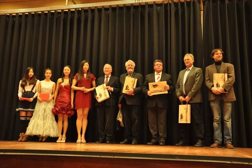 本次晚会有幸邀请到维尔茨堡市市长,Herr Bürgermeister Dr.Bauer, der Geschäftsführer des Studentenwerks Würzburg, Herr Ullrich ,derLeiter des International Office der Uni Würzburg, Herr Evenbye, der erste Vorsitzenderder GDCF (Gesellschaft für Deutsch-Chinesische Freundschaft Würzburg), HerrProfessor Dr. Böhn, der erste stellvertretenderVorsitzender derGDCF, Herr Dr. Trolldenier, 慕尼黑领事馆黄领事也为观众带来了新春美好的祝愿。
