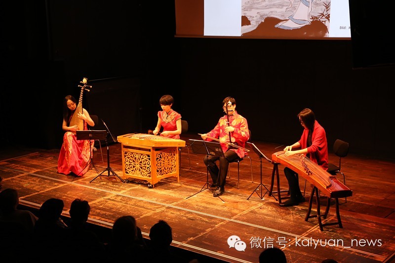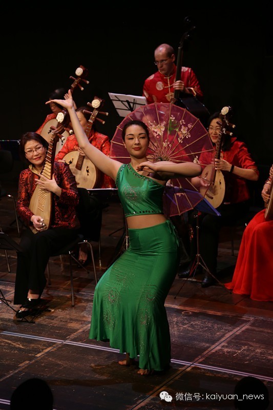 音乐会的下半场,伎乐天乐团以一曲欢快的《花好月圆》开场。轻松愉悦的曲调,无间的配合,让大家再次感受刚过去不久的新年气息。“姑苏城外寒山寺,夜半钟声到客船”,《姑苏行》在阵阵笛子声中,引着大家一齐领略苏州古城的秀丽风光,感受着典雅优美的旋律。走过小桥流水,来到美丽的云南,葫芦丝悠扬独特的音色在乐队的衬托下,带出傣族人映着月光在凤尾竹林中美丽的爱情故事。“春江潮水连海平,海上明月共潮生”,琵琶与古筝的古典名曲《春江花月夜》,再现了江南春夜下万里长江的波澜壮阔景色,将音乐会推向高潮。还有《侗乡之夜》和《瑶族舞曲》,为慕尼黑的观众展示了中国少数民族丰富多彩的音乐。