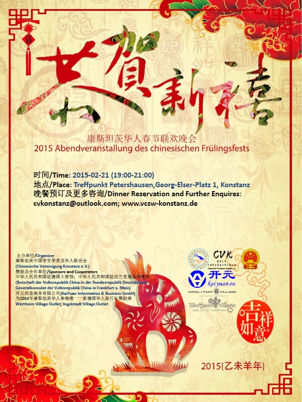 时间:2015年2月21日(19:00--21:00) 地点:Treffpunkt Petershausen,Georg‐Elser‐Platz 1, Konstanz